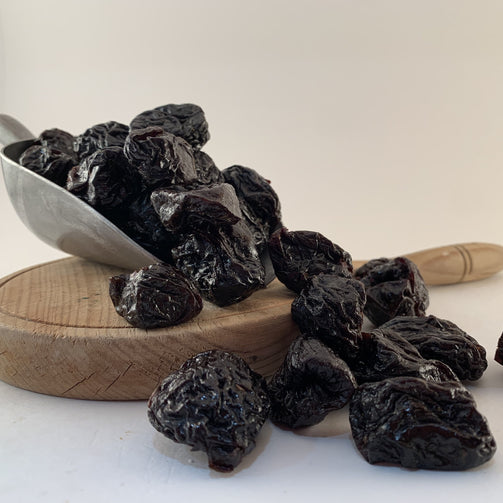 Incredibly moist and rich organic Pitted Prunes ready to use in your sweet and savoury dishes or as a snack. Richly dark, plump, and sweet, these pitted prunes are tender on the outside, soft and sticky on the inside, and oh-so-sweet with every bite.