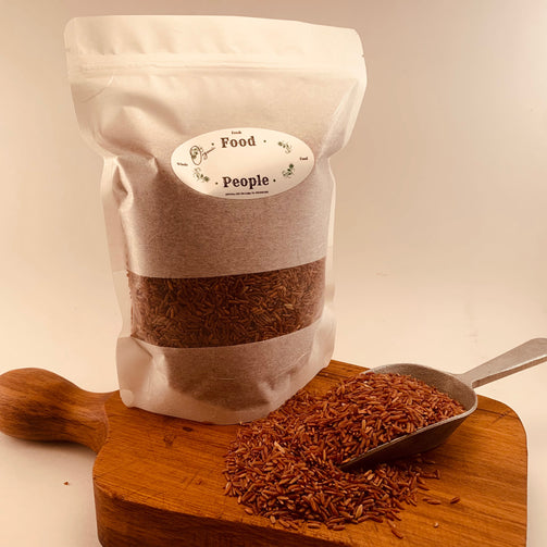 This Thai Red Jasmine Rice sourced from Tootsi Impex is an aromatic whole, long-grain rice. An un milled rice, it has a full texture and nice rosy colouring when cooked. The flavour is deep and nutty with notes of jasmine. I like to add a little extra water to this one and cook it a bit longer to make it good, plump and soft.